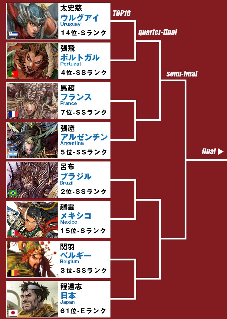 ロシアワールドカップ 決勝トーナメントの例のアレ 三国志編。 pic.twitter.com/oyNfnwS8zX